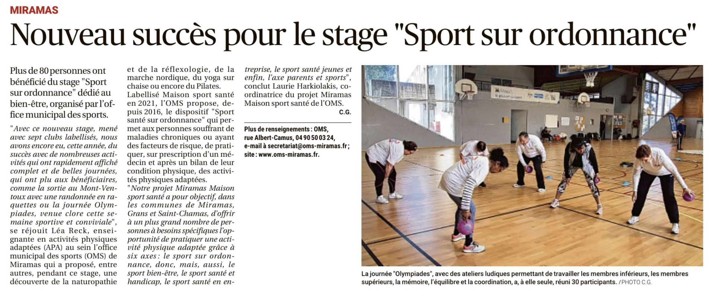 « Nouveau succès pour le stage Sport sur Ordonnance » – Revue de presse La Provence 09/03/2024 9 mars 2024 | Presse Retour aux actualités ← "L'OMS sensibilise aux JO avec les Urban Games" - Revue de presse La Provence 08/03/2024